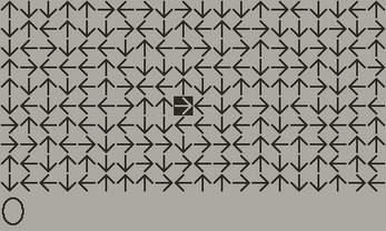 controls: d-pad. pressing any direction on the d-pad will send you one step in the current direction of the arrow you're standing on and change that arrow to whichever direction you pressed. pressing in the same direction as the current arrow will change the current arrow to an X instead, granting you one point but preventing you from landing on that square again. landing on an X or going off the edge of the screen results in a game over.